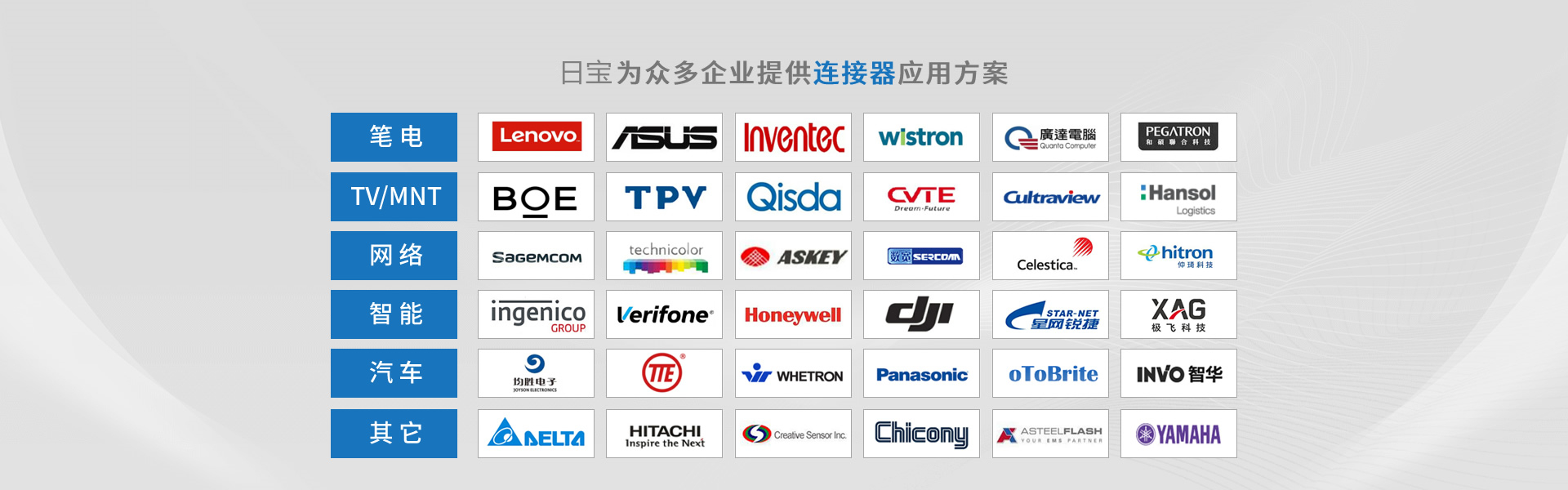 深圳市日寶電子科技有限公司創(chuàng)立于2015年,總部位于蘇州吳江區(qū),總部公司成立于2005年,是一家專業(yè)從事精密連接器設(shè)計(jì)、制造及銷售的高新科技企業(yè)。產(chǎn)品廣泛應(yīng)用于消費(fèi)電子、汽車電子、網(wǎng)絡(luò)通訊及工業(yè)電子設(shè)備、軍工、航天航空、醫(yī)療器械等領(lǐng)域。目前公司產(chǎn)品除本土市場外,更遠(yuǎn)銷歐、美、日等海外市場。 日寶電子注重長遠(yuǎn)發(fā)展,先后取得ISO9001/14001質(zhì)量與環(huán)境管理體系、IATF16949汽車質(zhì)量管理體系、ISO13485醫(yī)療器械質(zhì)量管理體系、UL,GB/T29490知識(shí)產(chǎn)權(quán)管理體系等認(rèn)證, 并加入HDMI、USB等協(xié)會(huì)。 為提升企業(yè)核心競爭力,公司大力推進(jìn)信息化與工業(yè)化的兩化融合建設(shè),先后導(dǎo)入ERP、PLM、CRM、SRM、MES及OA等系統(tǒng)管理軟件,不斷自我提升,為打造新一代智能制造標(biāo)桿企業(yè)不懈努力。 日寶電子擁有業(yè)界專業(yè)的電氣與機(jī)構(gòu)研發(fā)技術(shù)團(tuán)隊(duì),相繼獲得260余項(xiàng)發(fā)明和實(shí)用新型專利,在這日新月異的科技時(shí)代,堅(jiān)持以技術(shù)創(chuàng)新為導(dǎo)向,深度服務(wù)客戶...